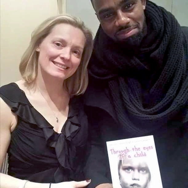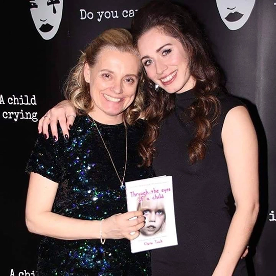 Linda Robson holding a book, Through the eyes of a child by Chris Tuck, Author